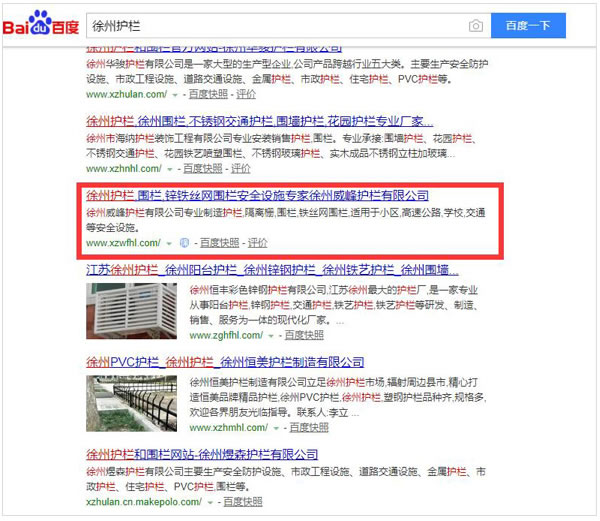 关键词“徐州护栏”百度排名。