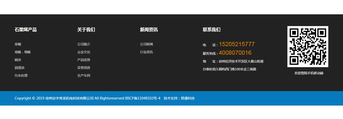 徐州安宇秀龙机电科技有限公司致力于石墨烯电热转化应用、石墨烯医疗应用、石墨烯生物应用、石墨烯能源应用、石墨烯防腐应用、石墨烯汽车润滑应用等石墨烯各个领域研发、生产、营销、售后服务的全方位科技型企业,技术和生产上深耕开拓;致力于打造“产学研一体化的高科技、高成长型企业,与北京研究院(简称MITBJ)、江南石墨烯研究院达成长期技术合作,与江苏天创新材料科技有限公司达成深度战略合作关系,并通过线上和线下交互融合的全新营销服务模式及独创的分享销售模式让所有公司产品的使用者及受益者成为公司的销售者和分享者。