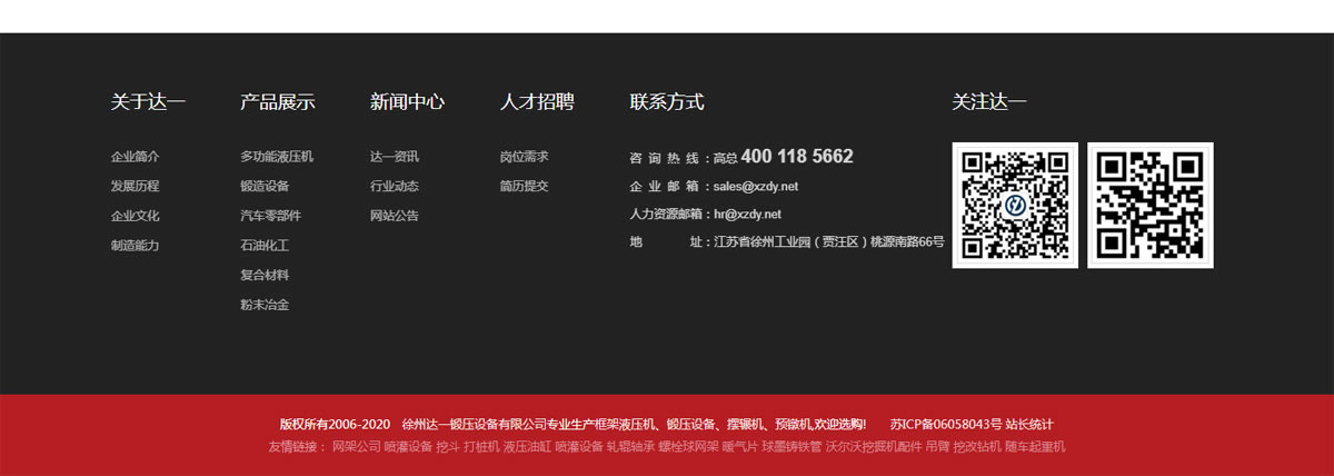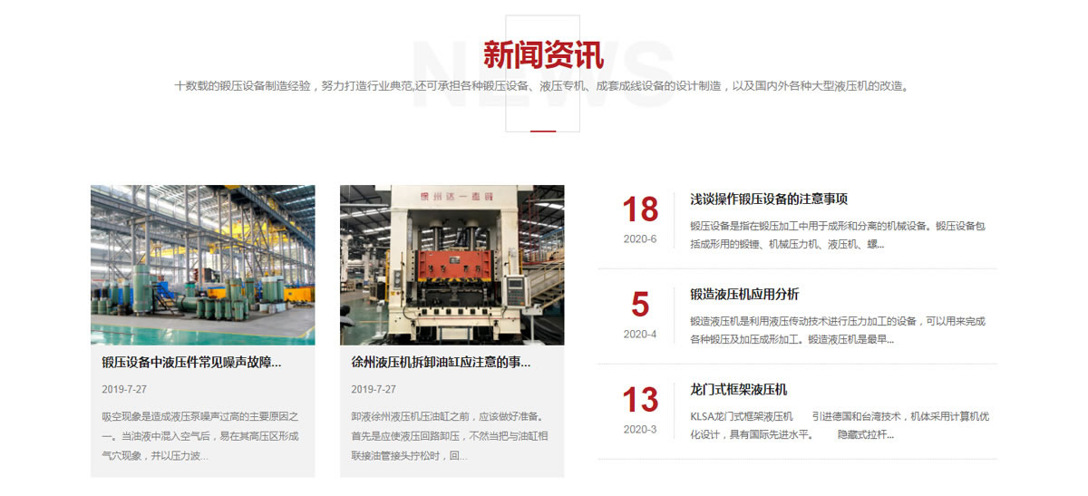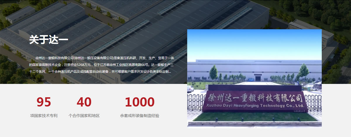徐州达一锻压设备有限公司是集液压机科研、开发、生产、贸易于一体的高新技术企业。目前能够生产三十二个系列、一千余种液压机产品以及成线成套装备,同时可根据用户要求开发设计非标专用产品,产品规格从40吨至30000吨,广泛用于航空航天、汽车制造、新型能源、造船、军工、轻工、家电等领域。