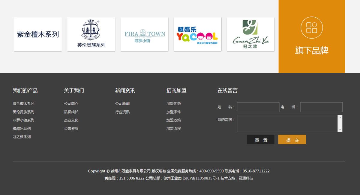 徐州市万鑫家具有限公司以专业的产品研发技术、现代化的生产设备及科学的管理模式、精益求精。先后推出五大产品:“冠之雅”樟子松套房系列、“雅酷乐”芬兰松系列、“菲罗小镇” 小美式系列、“冠之雅”英伦系列和“冠之雅”紫金檀系列。产品款式新颖、环保健康,成为消费者居家生活的理想选择。
