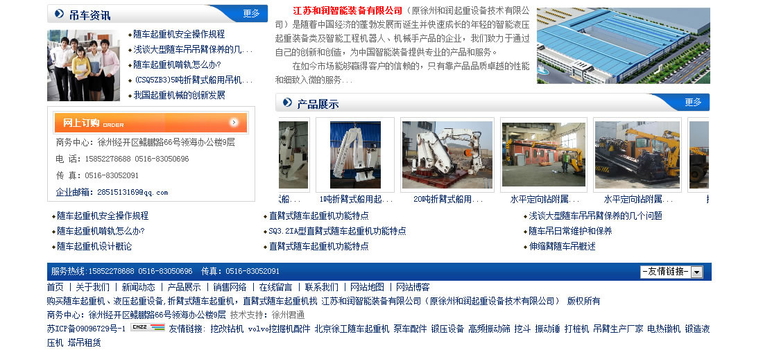 江苏和润智能装备有限公司(原徐州和润起重设备技术有限公司)(简称“和润装备”)拥有起重机业界完整的产品线和融合解决方案,通过全系列的产品和专业服务,灵活满足不同用户的差异化需求及快速创新的追求。公司全系列产品包括:sq系列1-100吨随车起重机、ysq系列油田用工程作业起重机、ksq矿山起重机械、fsq系列水平定向钻机用起重机、csq系列港口船舶用起重机、wg系列液压伸缩桅杆、xsq抢险救援消防车专用起重机、jp系列高喷消防车举升机构、dm系列油田地锚车、液压起重设备零部件(回转支承、液压油缸、液压绞车、多路阀)等10余类系列100多个品种。