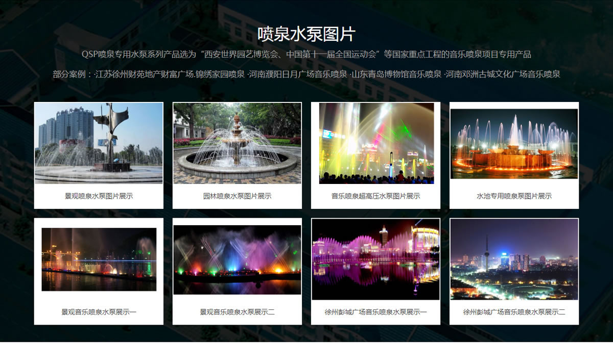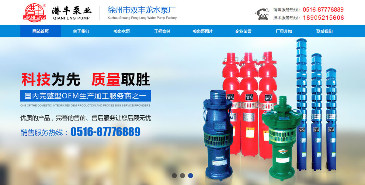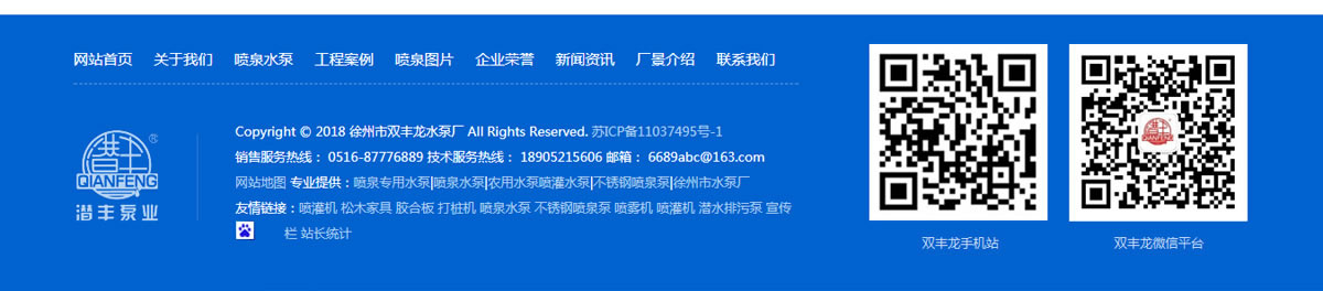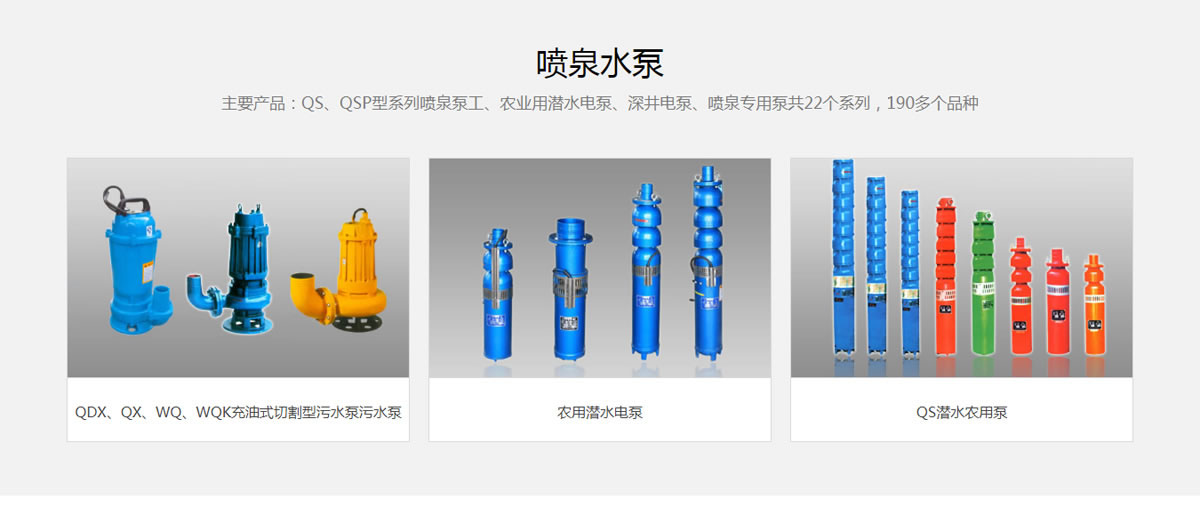 徐州市双丰龙水泵厂是专业从事泵类的科研、开发、制造于一体的大型企业。主要产品:QS、QSP、QSPF、QDX、QX、WQ、WQK、QJ型系列工、农业用潜水电泵、深井电泵、喷泉专用泵共22个系列,190多个品种。