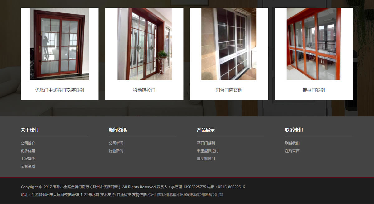 邳州市金路金属门商行(邳州市优派门窗)是一家专业从事铝制品门窗的民营企业,可根据客户具体要求做出各种新颖款式的产品,迎合现代简述推拉门,高尚住宅阳台新型立体木纹推拉门、美观大气折叠门,浴室平开门和小折叠门等。产品种类齐全,设计风格多样,既有时尚气息,又不乏传统意蕴,可满足不同客户多角度的选择需求。