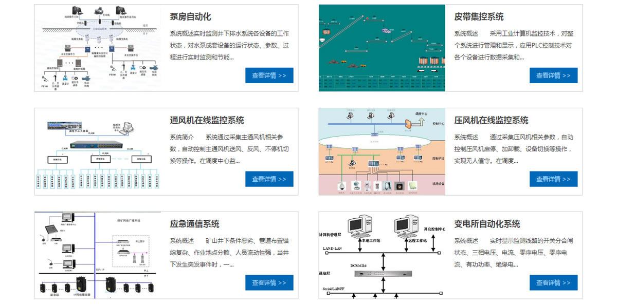 江苏中矿创慧信息科技股份有限公司主要产品有:运输皮带集控系统,泵房自动化系统,主通风机自动化系统,压风机自动化系统,变电所自动化系统,能源管理系统及矿山综合自动化管控平台;监测监控系统,无线视频监控系统,大屏幕调度显示系统,宽联矿山移动通信系统,全无线井下人员精确定位系统及综合调度信息系统等。